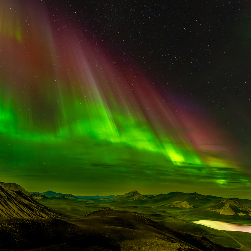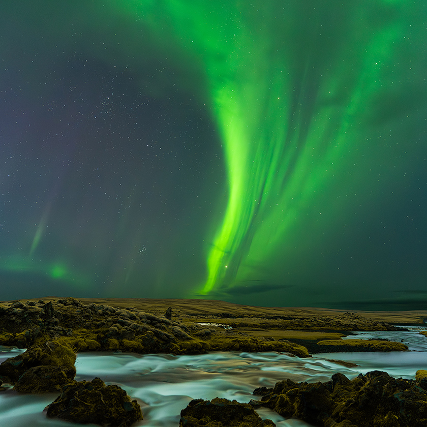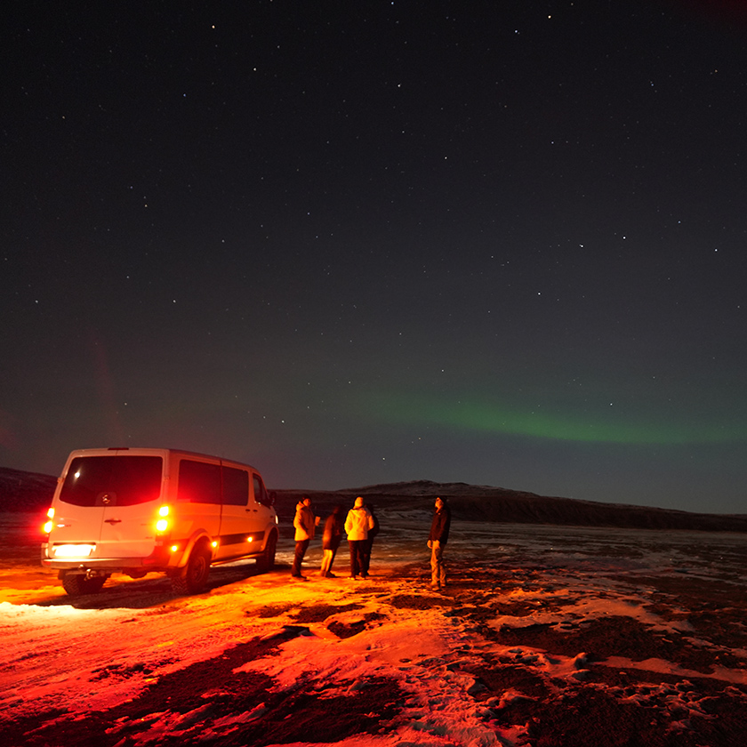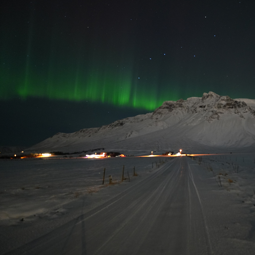 Into the Icelandic wilderness, where the best chances of seeing the Northern lights are.